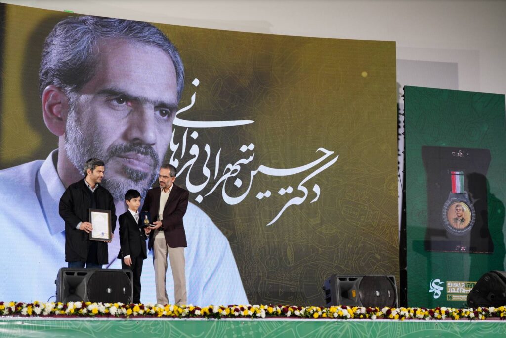 در ادامه نشان مردمی «استقلال» مزین به تصویر شهید «فریدون عباسی» با حضور خانواده شهید عباسی به حسین شهرابی، مدیر پروژه ماهواره ملی امید، اهدا شد.