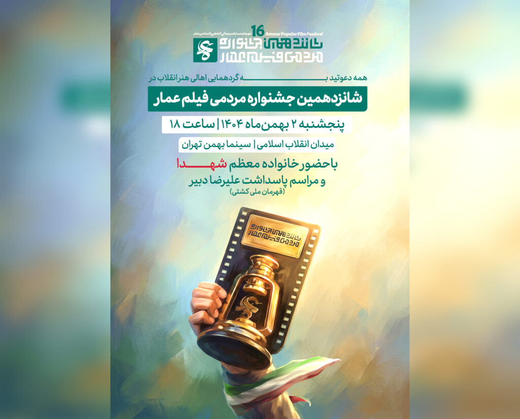 همچنین آثار شانزدهمین جشنواره مردمی فیلم عمار در موضوعات «نبرد تمدنی ایران اسلامی با غرب وحشی»، «نهضت جهانی مستضعفین و نظم جدید جهانی»، «آرمان روحالله»، «ملت قهرمان»، «اتحاد مقدس»، «عدالت»، «رویای ایرانی»، «حافظه ملی»، «جنگ اقتصادی»، «جنگ فرهنگی» و «دانشگاه؛ دژ دانش» با یکدیگر به رقابت میپردازند.