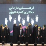 اجرای سرود دخترانهی «آرمان دختران انقلاب» به سرپرستی فاطمه ابراهیمی و اجرای دانشآموزان مدرسه قمری، مقدمهای بود بر ساعت ۲۱ و بانگ اللهاکبر. اما پیش از شعار «اللهاکبر» سرود ملی پخش شد؛ بله؛ دقیقا وسط مراسم بود که مردم به احترام سرود جمهوری اسلامی ایران قیام و با سرود همخوانی کردند.